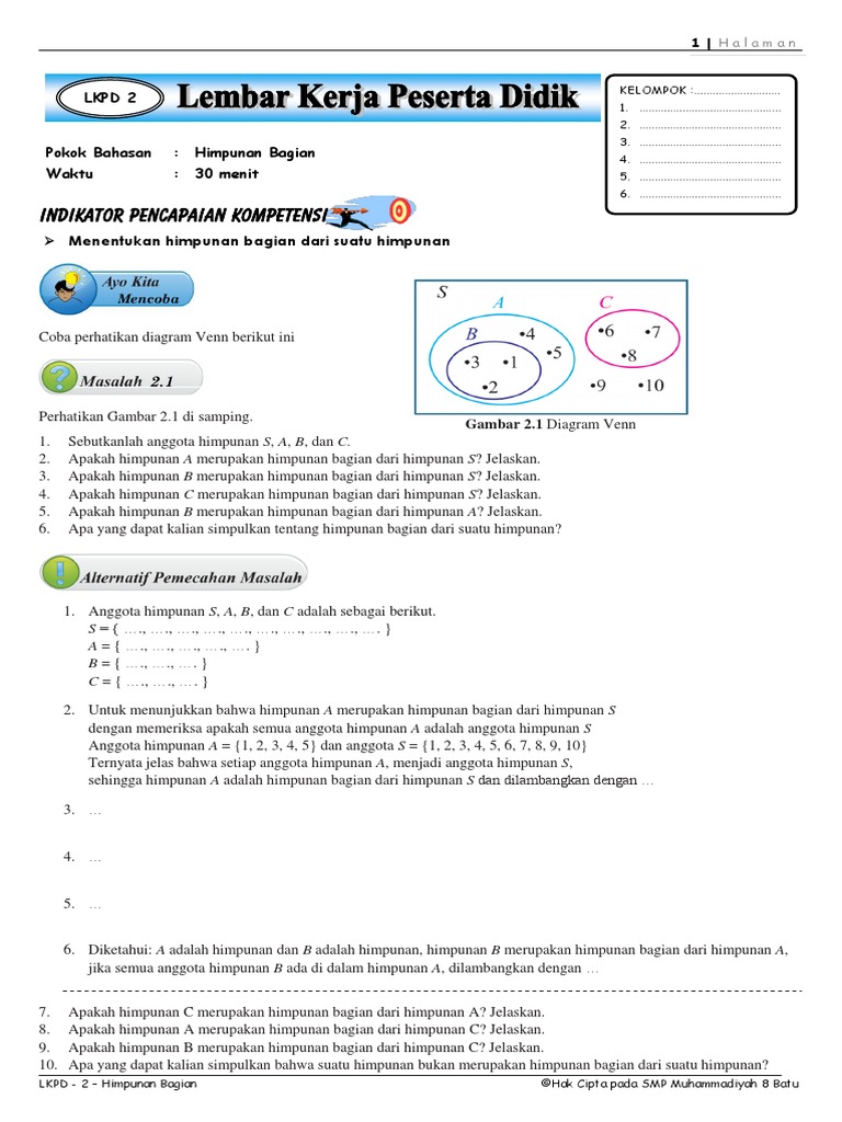 Kelas 7 - Himpunan - Ayo Kita Berlatih 2.8 - YouTube