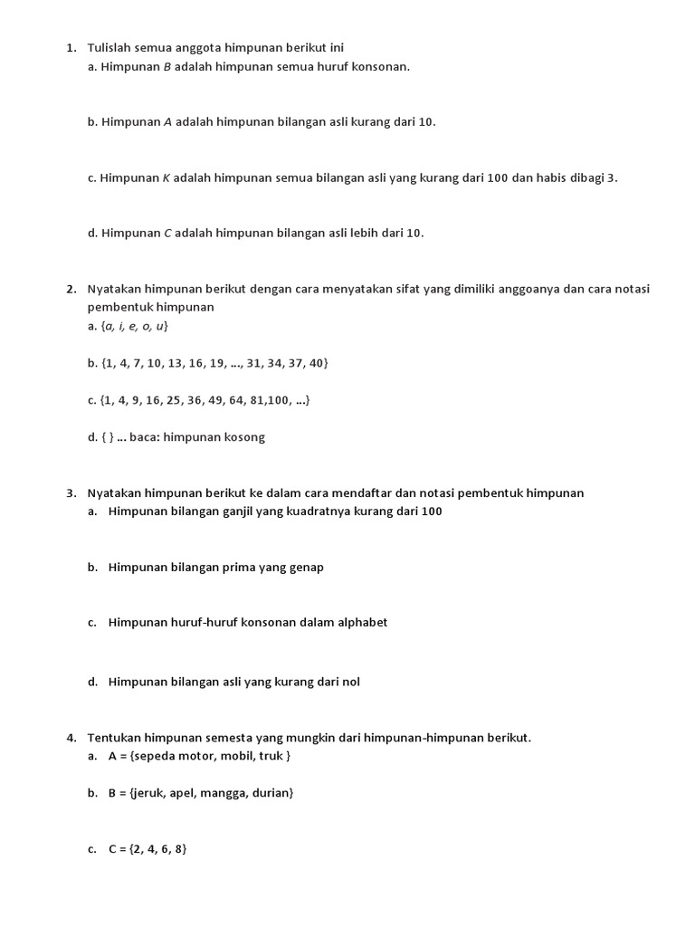 1.Tulislah anggota himpunan berikut ini a.HimpunanB adalah himpunan semua huruf konsonan b.Himpunan - Brainly.co.id
