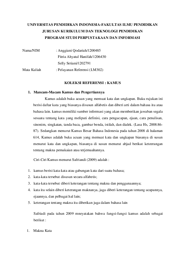 DOC) Analisis Bahan Pustaka Referensi - Kamus.docx | Anggiani …