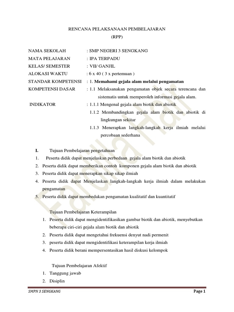 Rencana Pelaksanaan Pembelajaran Kls Vii