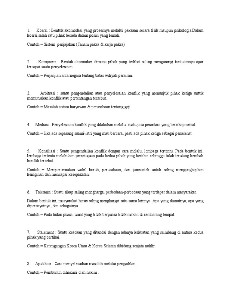 apa yang dimaksud dengan : a.) koersi b.) kompromi c.) arbitrasi d …