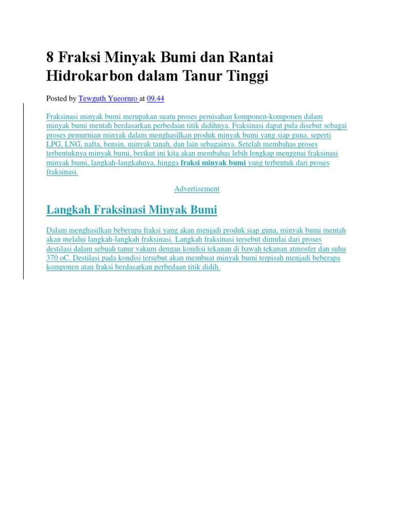 8 Fraksi Minyak Bumi Dan Rantai Hidrokarbon Dalam Tanur Tinggi
