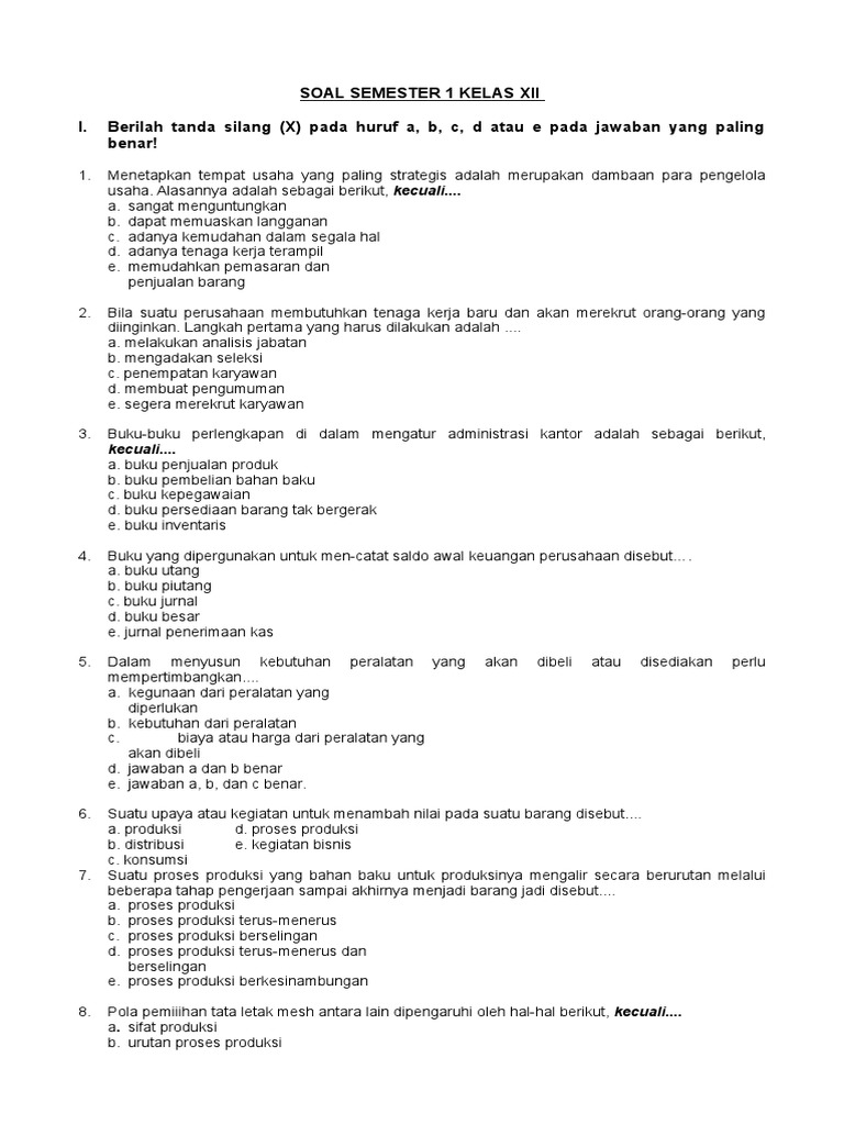Soal Kewirausahaan Smt 1 Kelas Xii