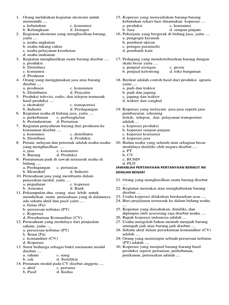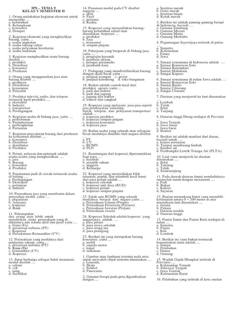Soal IPS Kelas 5 SD BAB Jenis Usaha dan Kegiatan Ekonomi Dan Kunci …