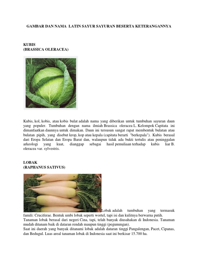 Gambar Dan Nama Latin Sayur Sayuran Beserta Keterangannya