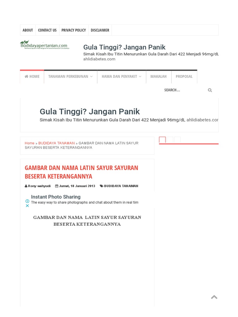 MUSUH ALAMI-PREDATOR: GAMBAR DAN NAMA LATIN SAYUR SAYURAN BESERTA KETERANGANNYA