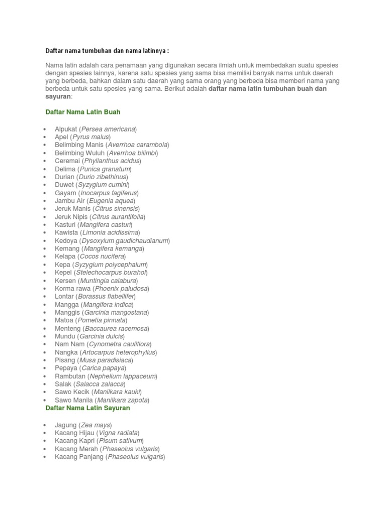 Daftar Nama Latin Tumbuhan Sayuran Buah - Daftar Nama Tumbuhan