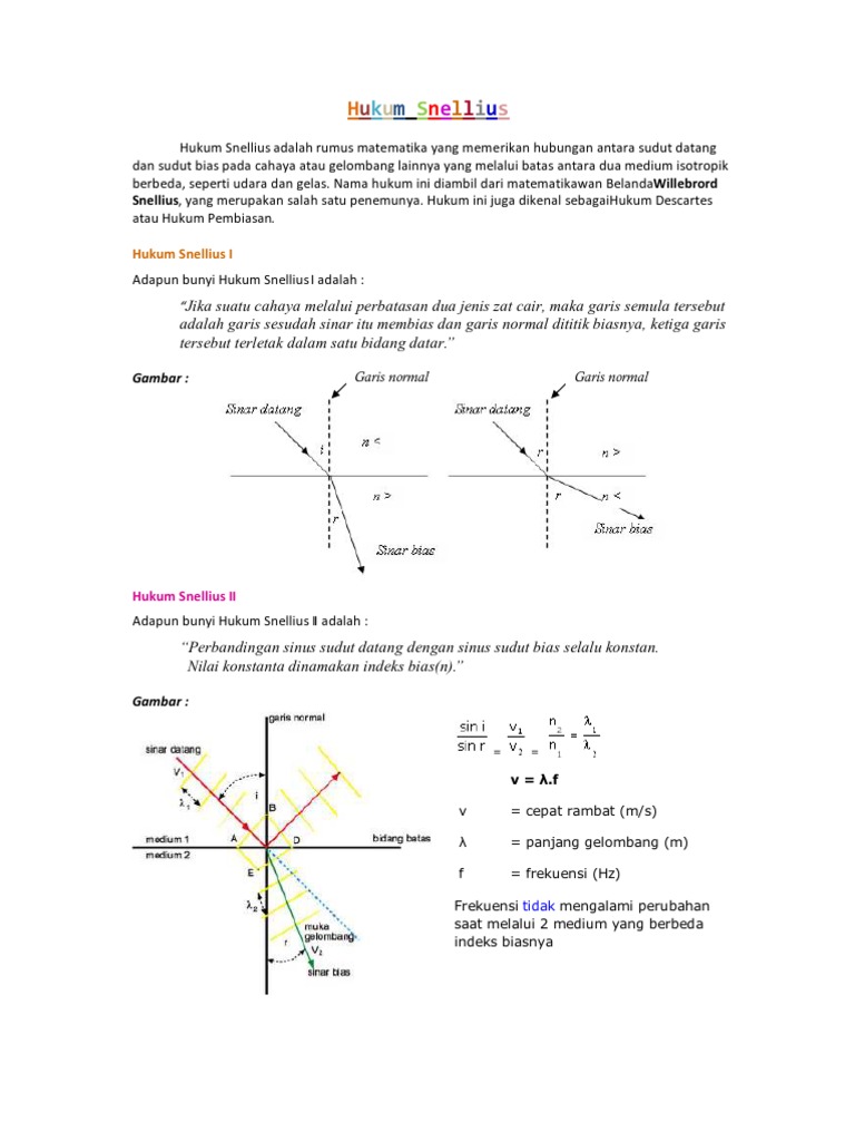 Bunyi Hukum Pembiasan Cahaya (Hukum Snellius).pptx - Pembiasan Cahaya(Hukum Snellius Definisi Hukum Snellius adalah rumus matematika yang meberikan | Course Hero