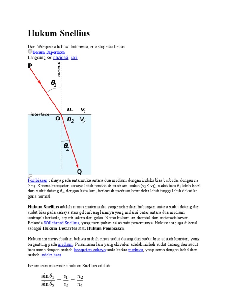 Hukum Snellius - Wikipedia bahasa Indonesia, ensiklopedia bebas
