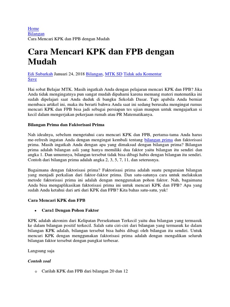 Cara Mencari Kpk Dan Fpb Dengan Pohon Faktor Erawan Leonar – Corona Todays