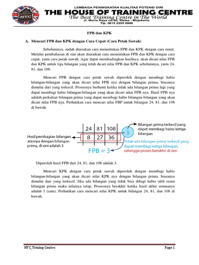 MENENTUKAN KELIPATAN PERSEKUTUAN TERKECIL (KPK) DAN FAKTOR PERSEKUTUAN TERBESAR (FPB) DENGAN METODE EBIK - PDF Free Download