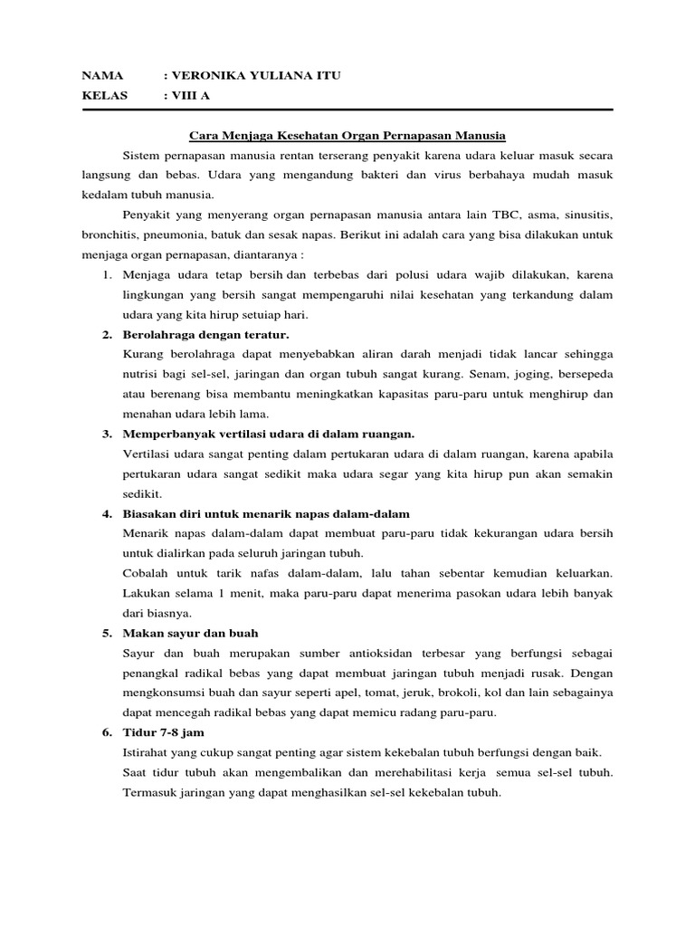 jelaskan cara menjaga kesehatan organ pernapasan kita - Brainly.co.id