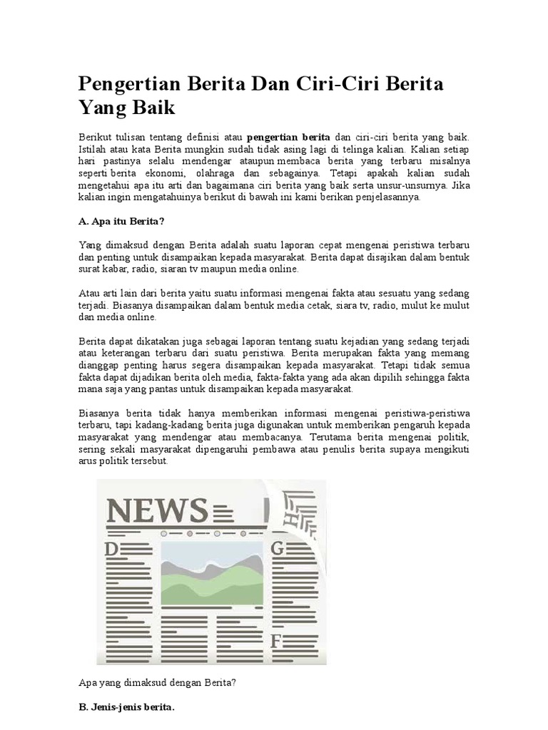 PENGERTIAN BERITA DAN CIRI-CIRI BERITA YANG BAIK: PENGERTIAN …