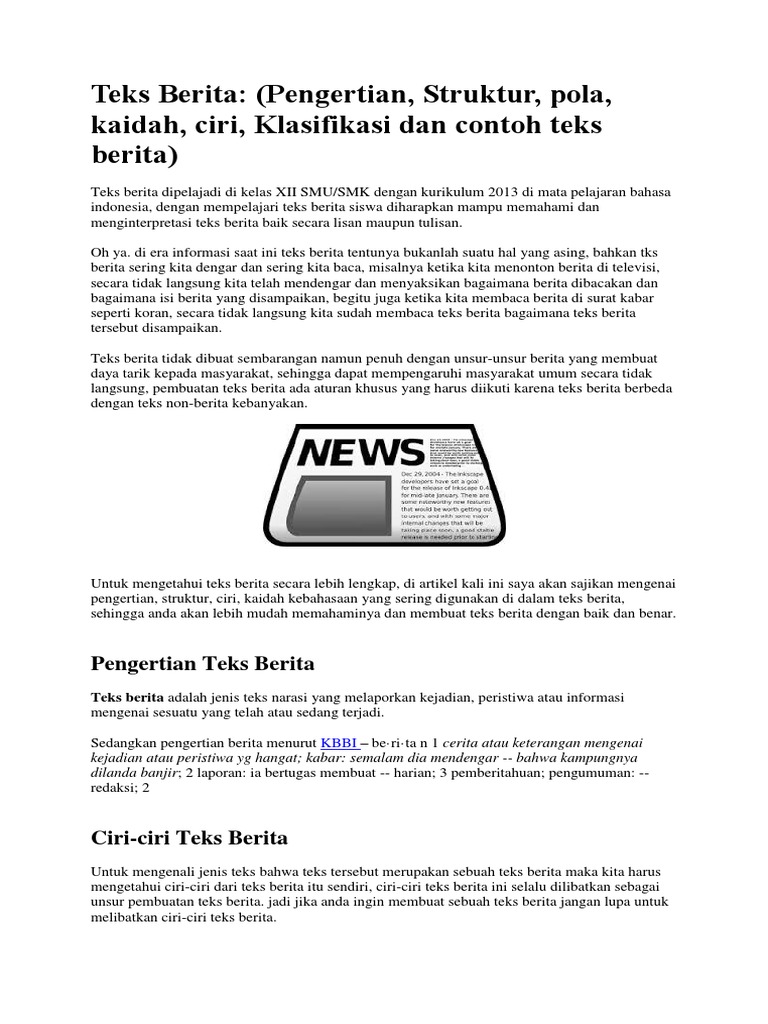 Sebut Dan Jelaskan Ciri Ciri Teks Berita - Sebutkan Itu