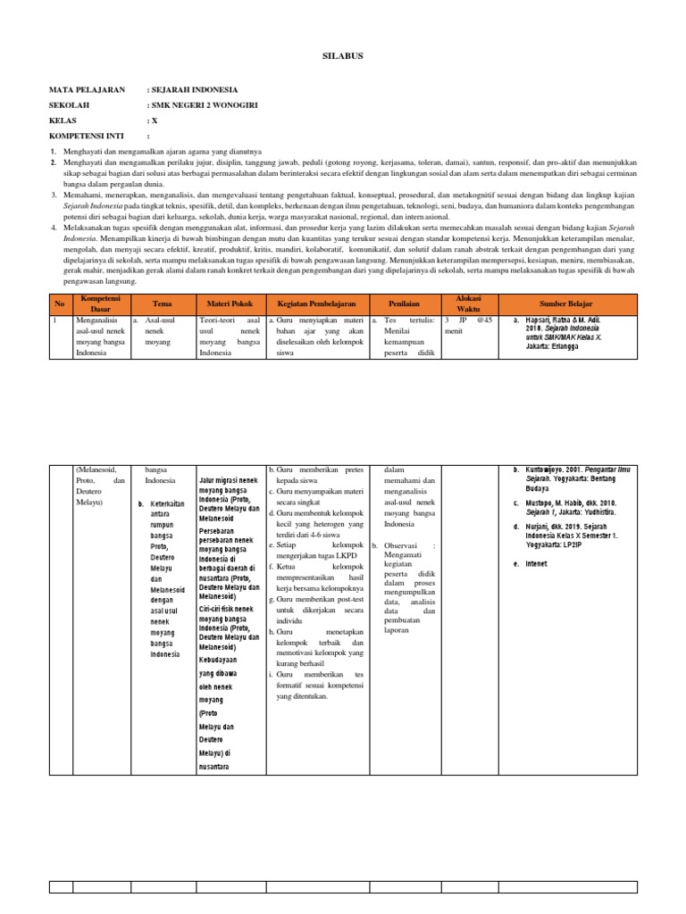 Silabus: Mata Pelajaran: Sejarah Indonesia Sekolah: Smk Negeri 2 …