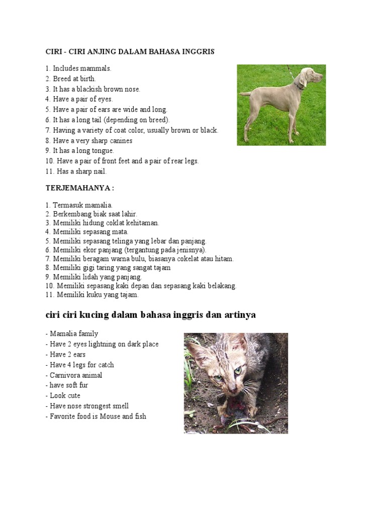sebutkan ciri-ciri hewan anjing dalam bahasa inggris - Brainly.co.id
