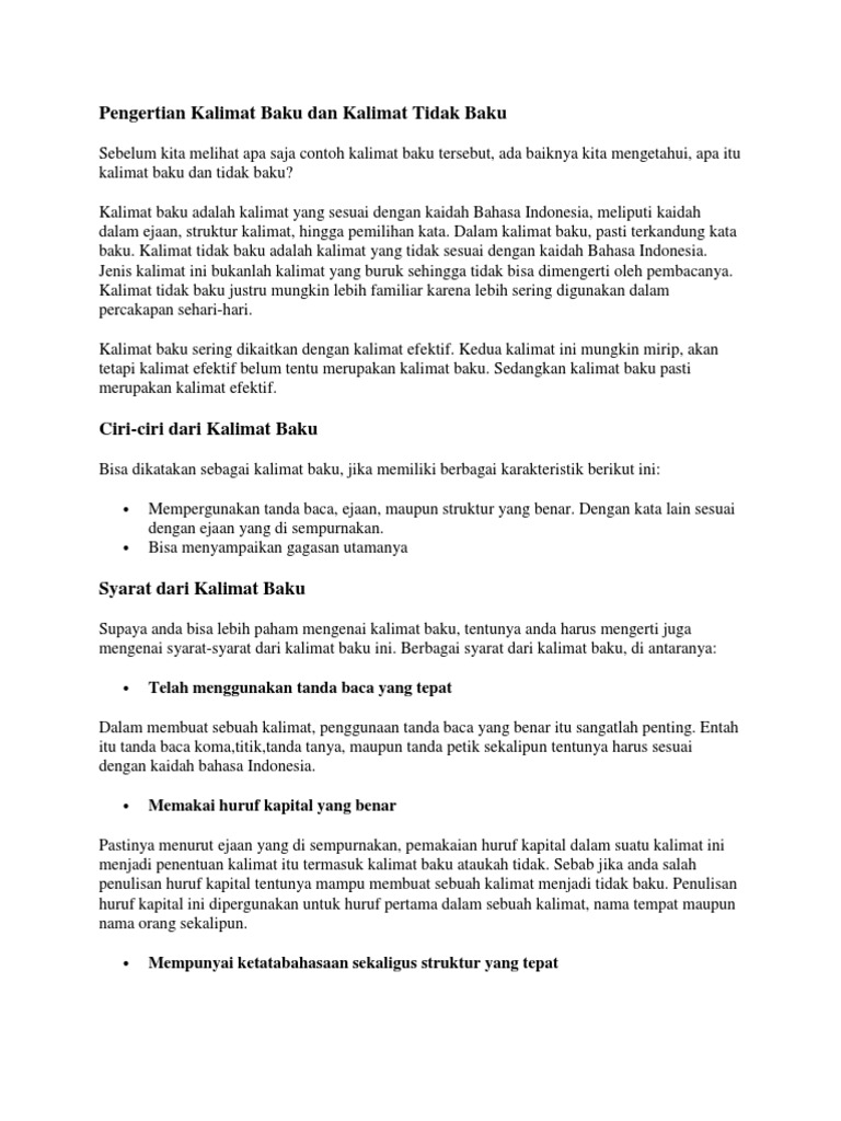 Pengertian dan Contoh (Kata) Kalimat Baku dan Tidak Baku beserta …
