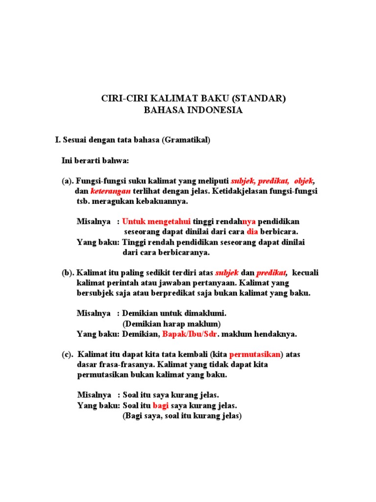 DOC) Fungsi dan Ciri-ciri Bahasa Baku | Koming Susanto - Academia.edu