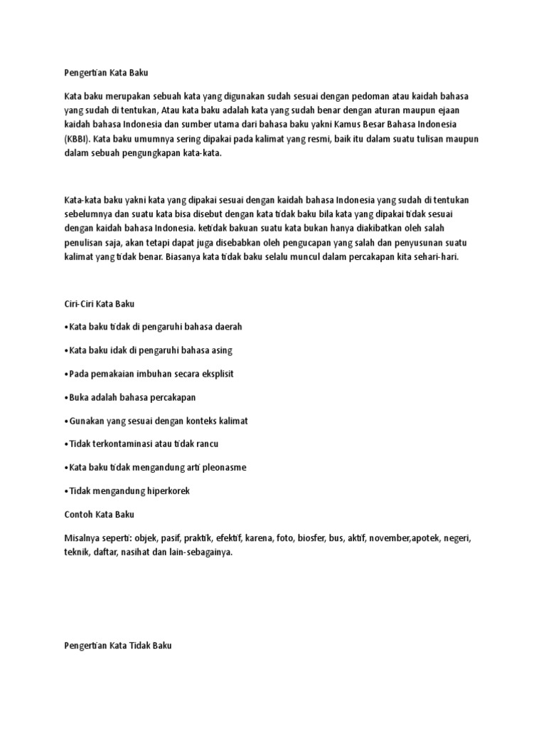 Pengertian Kata Baku Dan Tidak Baku Beserta Contohnya - Pengertian …