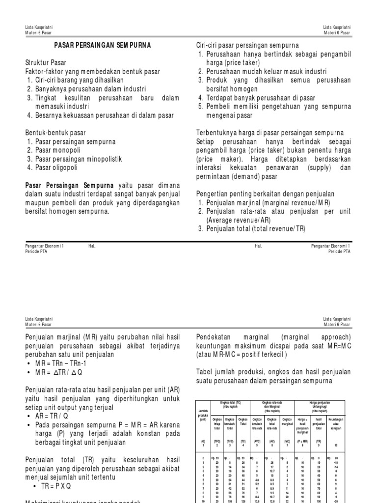 MODUL 5 pengantar ekonomi bisnis.docx - MODUL 5 Struktur Pasar Industri Persaingan Murni KEGIATAN BELAJAR 1 Struktur Pasar Industri A BENTUK PASAR ATAU | Course Hero