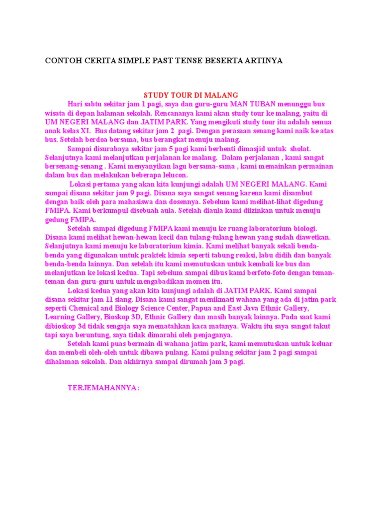 Contoh Cerita Yang Menggunakan Simple Past Tense Dan Present …