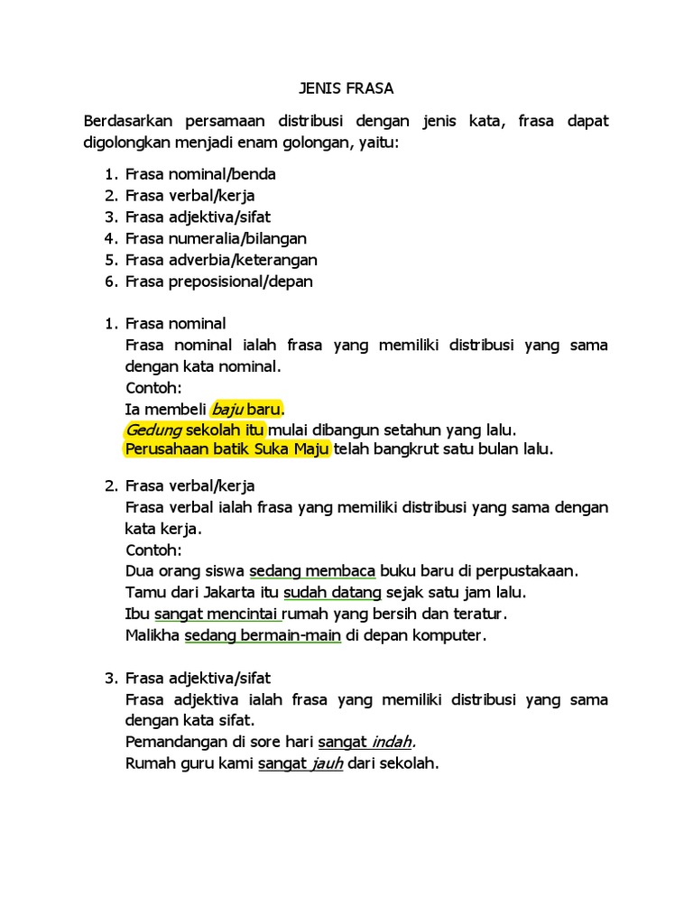 √ Frasa: Pengertian, Ciri, Jenis, Contoh - Yuksinau