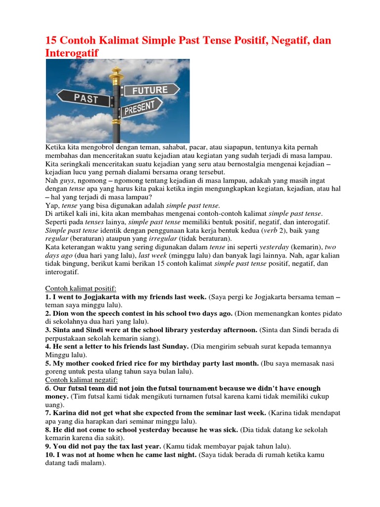 Contoh Simple Past Tense Positif Negatif Interogatif dan Arti …