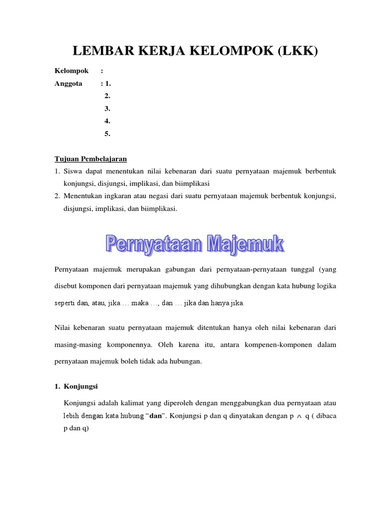 CONTOH KALIMAT MAJEMUK MATEMATIKA BERBENTUK IMPLIKASI | budiansyah …