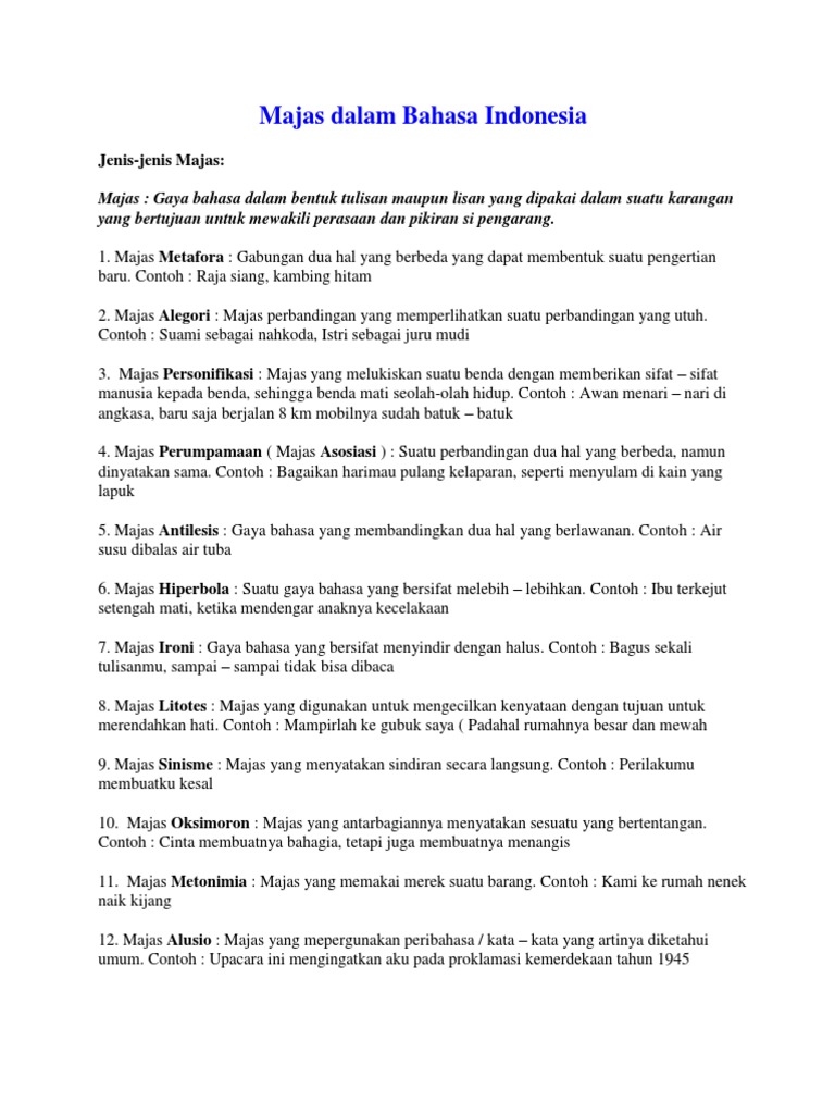 27 Macam Macam Majas Beserta Pengertian dan Contohya - MAHASISWAISLAM