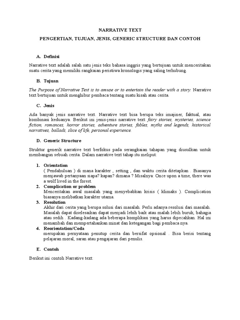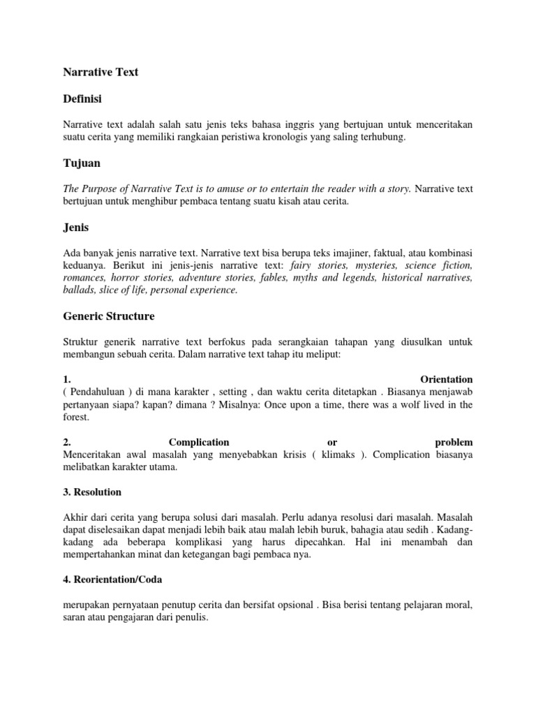 Pengertian Narrative Text Bahasa Inggris – Panduan Komplit …