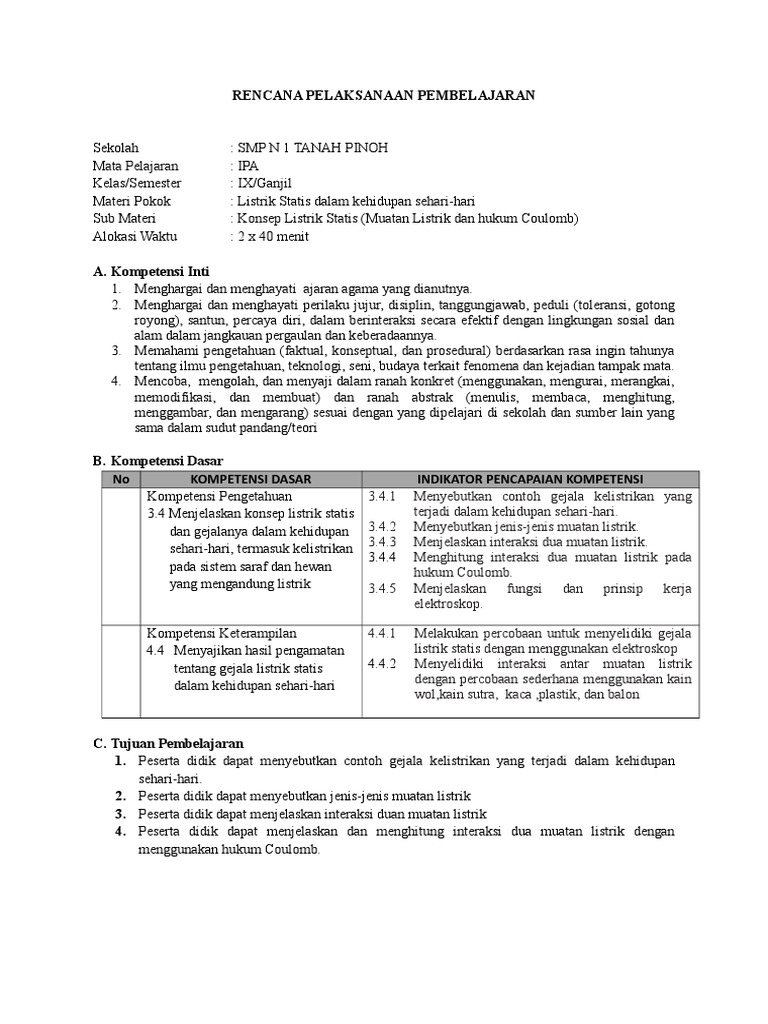 4 RPP. Pertemuan 1 Listrik Statis Praktik