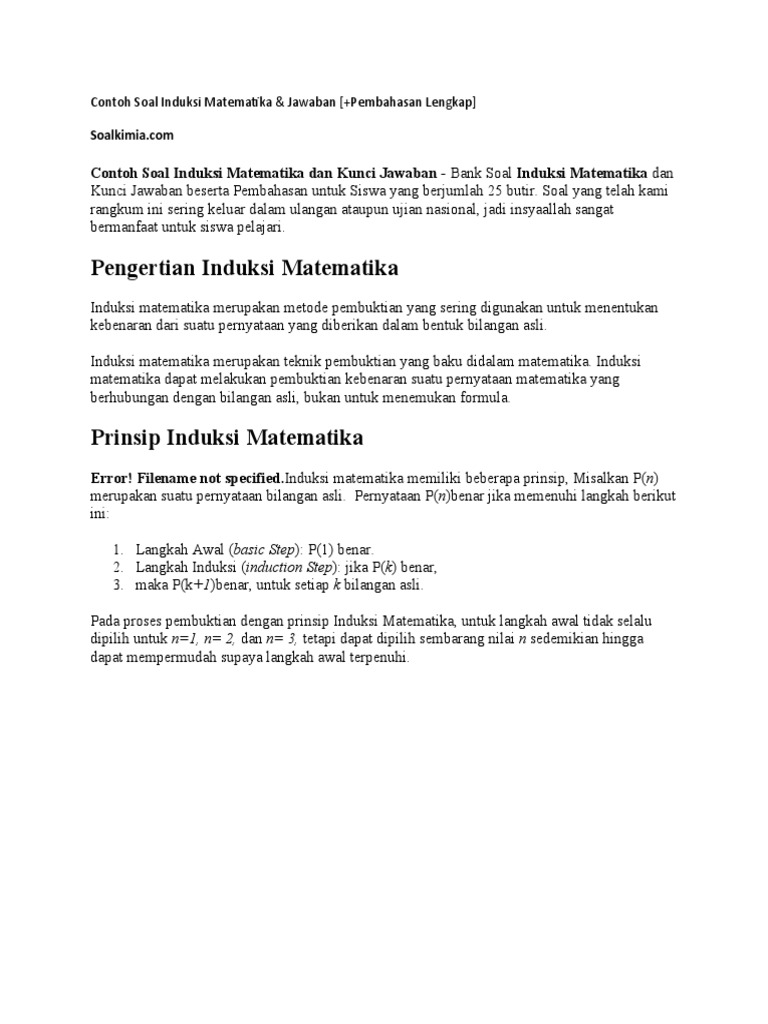 PDF) SOAL DAN PEMBAHASAN INDUKSI MATEMATIKA | Tika Sari - Academia.edu