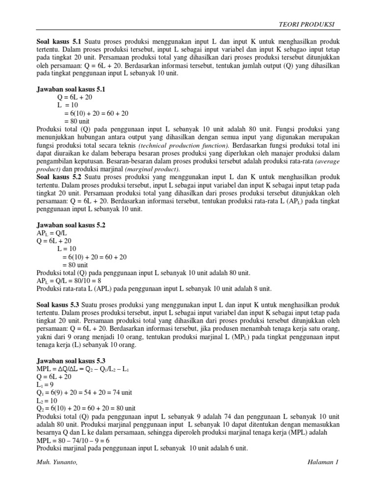 Contoh Soal Fungsi Produksi Dan Jawaban - Contoh Soal Terbaru