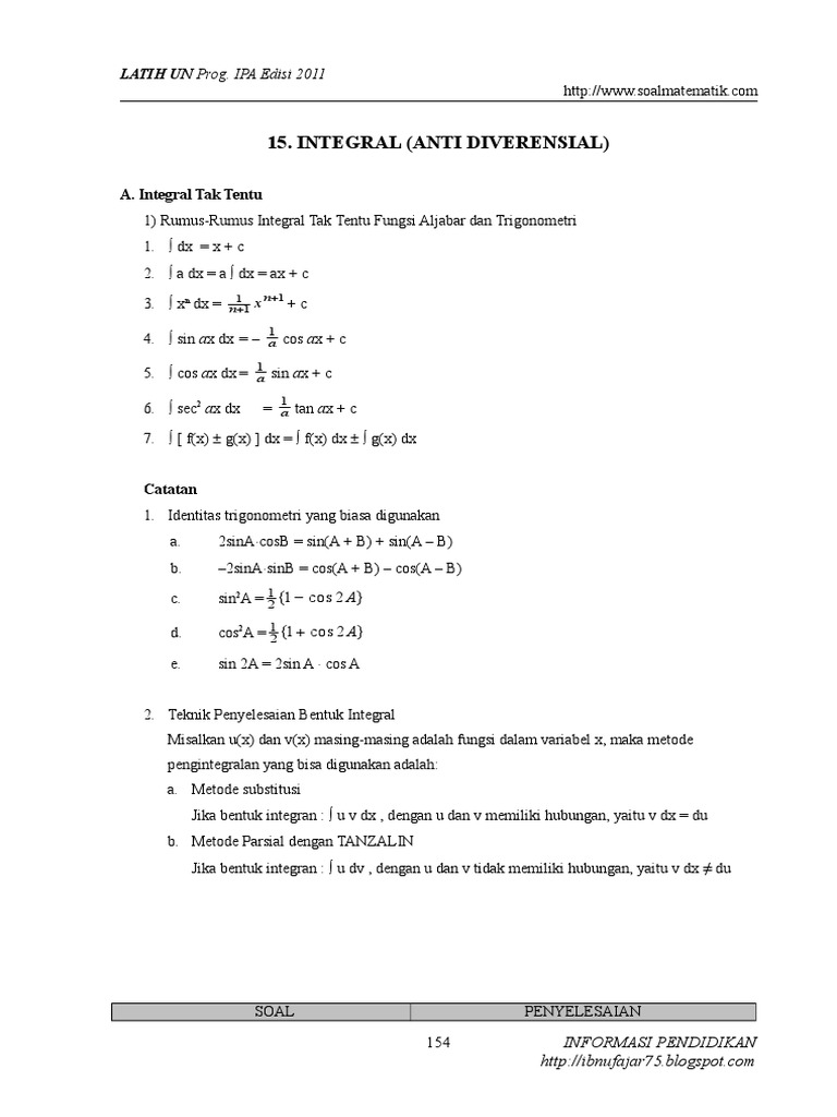 Rumus Lengkap Integral Tak Tentu: Contoh dan Pembahasannya ~ Sains …