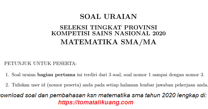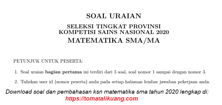 Soal & Pembahasan KSP KSN-P Matematika SMA 2020 PDF (Tingkat …