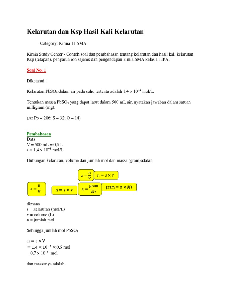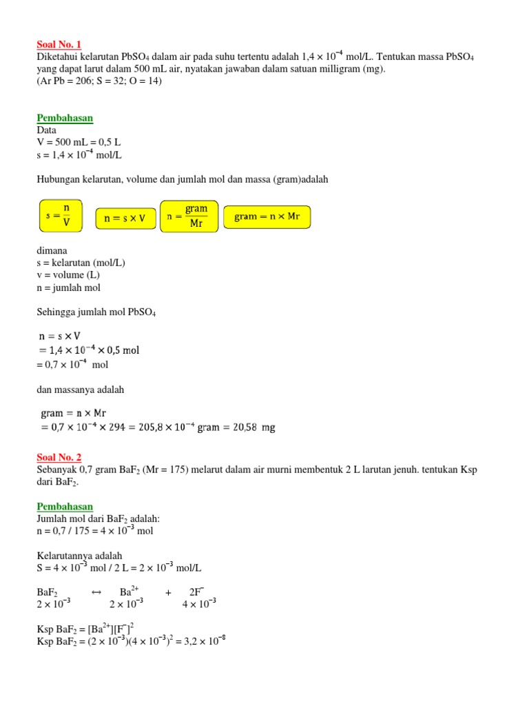 Contoh Soal Kelarutan Dan Hasil Kali Kelarutan - Contoh Soal Terbaru