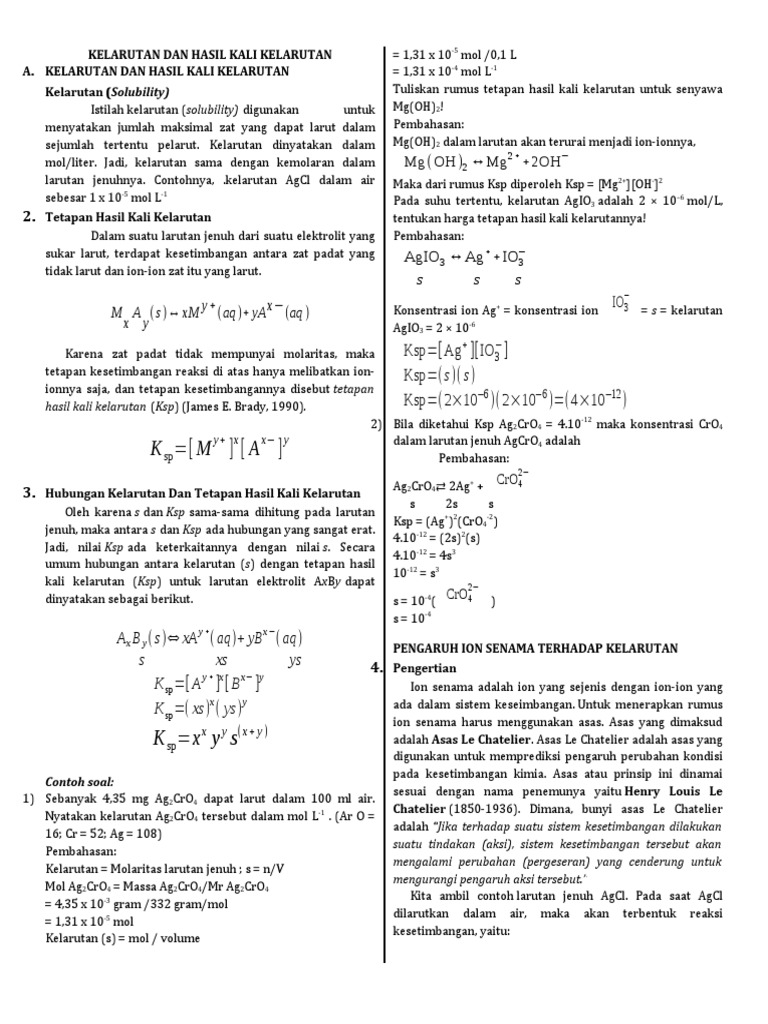 DOC) RINGKASAN MATERI: HASIL KALI KELARUTAN KSP | Wildan Archibald …