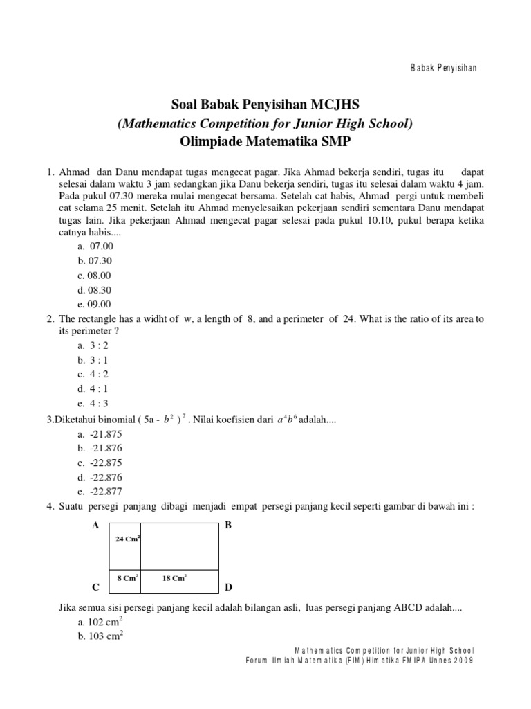 Contoh Soal Olimpiade Matematika Smp Dan Penyelesaiannya - Contoh Soal Terbaru