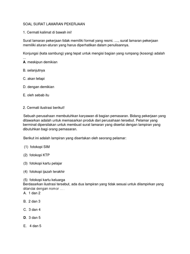 Contoh Soal Pilihan Ganda Tentang Surat Lamaran Pekerjaan Beserta Jawabannya - Dapatkan Contoh