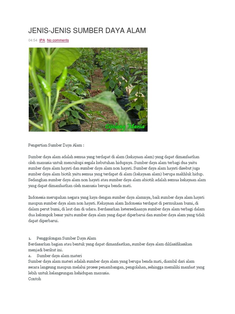 DOC) JENIS SUMBER DAYA ALAM, MANFAAT BESERTA GAMBAR | Layla Syta …