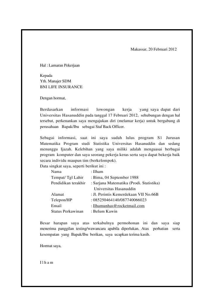Surat Lamaran Bni Life Insurance