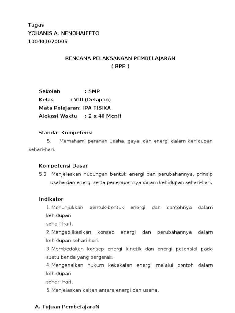 Rpp Usaha & Energi Ipa Terpadu