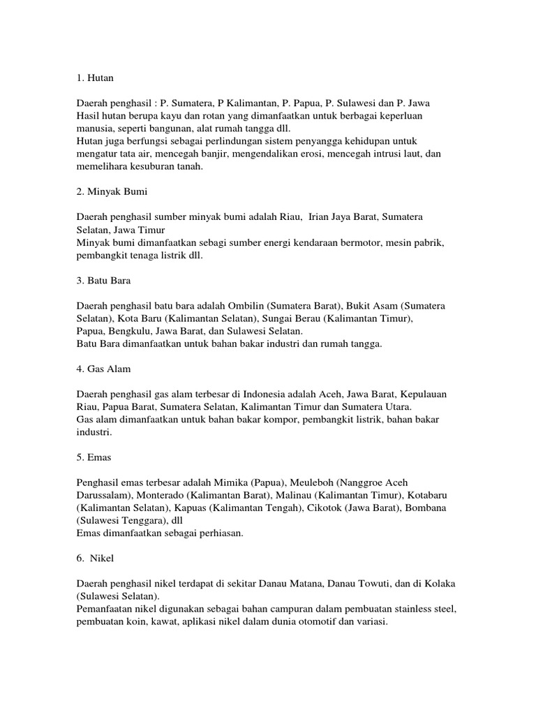 pemanfaatan dan daerah penghasil sumber daya alam indonesia …