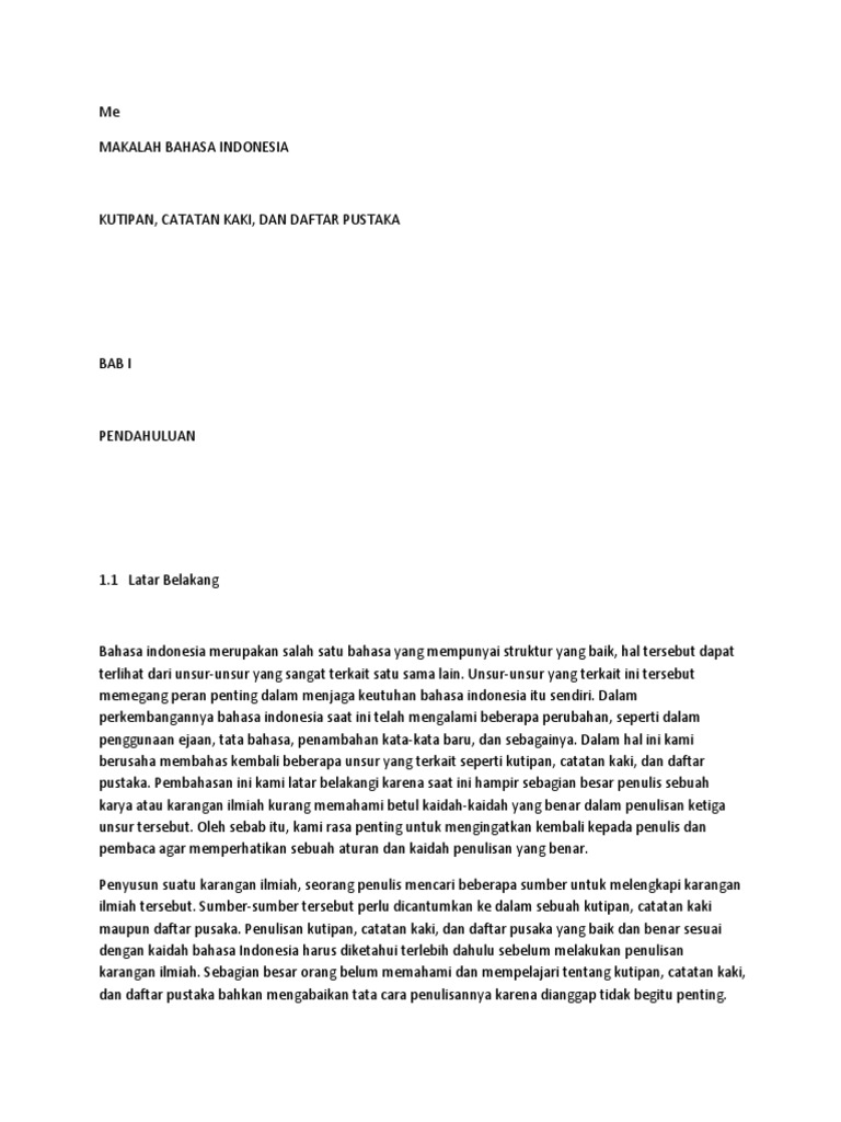DOC) Makalah Bahasa Indonesia : Kutipan, Catatan Kaki, dan Daftar Pustaka | Oyii AC - Academia.edu