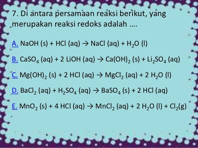 Diantara reaksi-reaksi berikut yang merupakan reaksi redoks adalah….. - Brainly.co.id