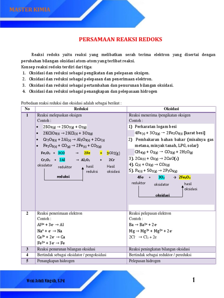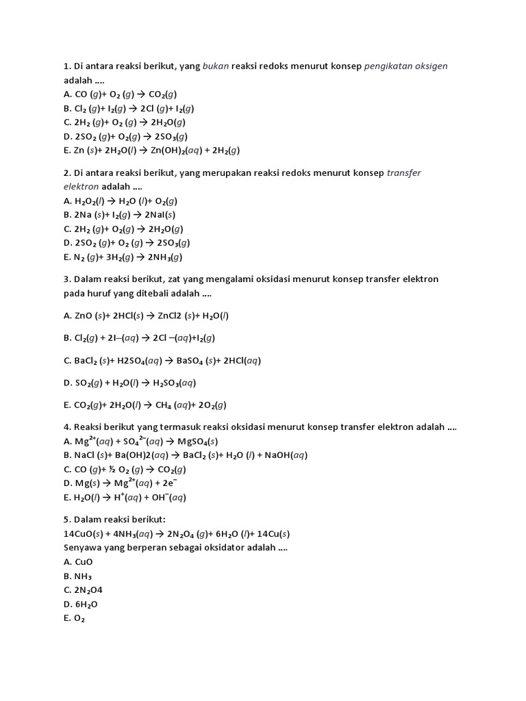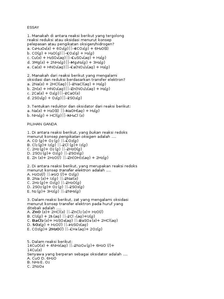 DOC) SOAL-SOAL REAKSI REDUKSI OKSIDASI DAN JAWABANNYA | gibran abinaya - Academia.edu