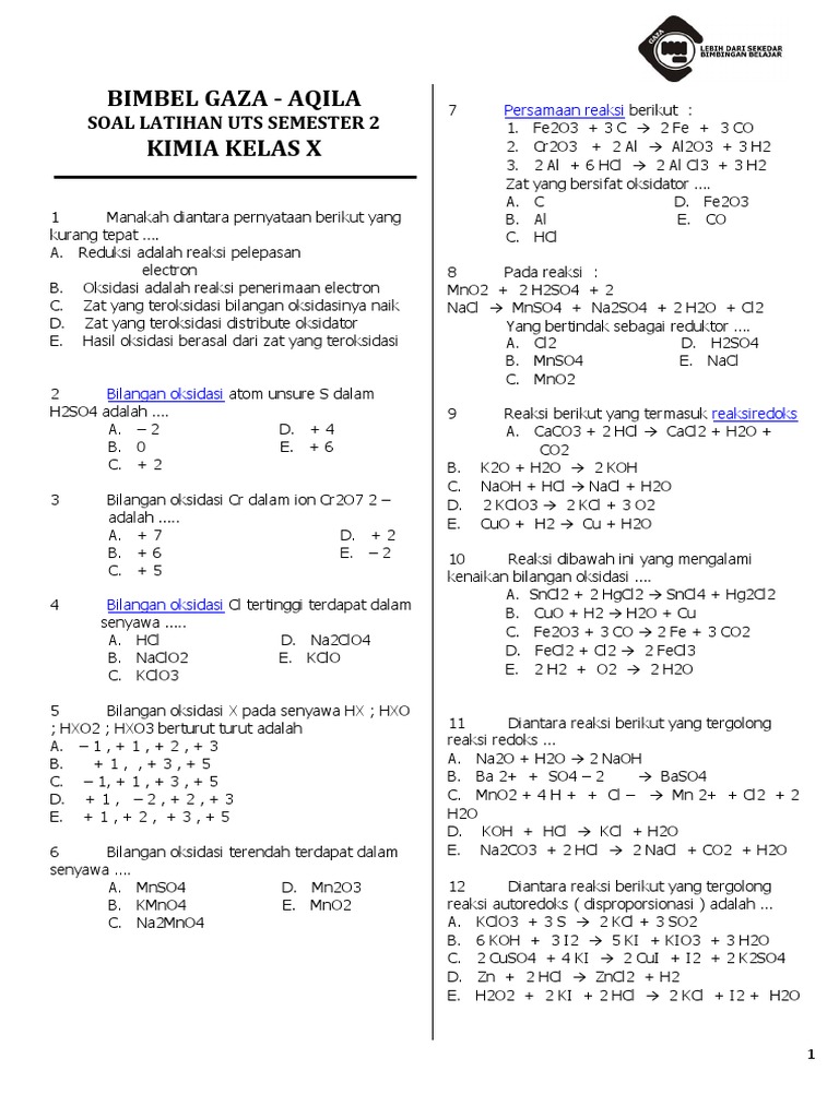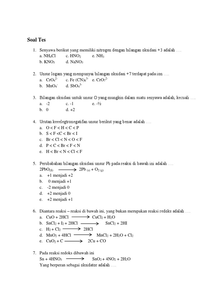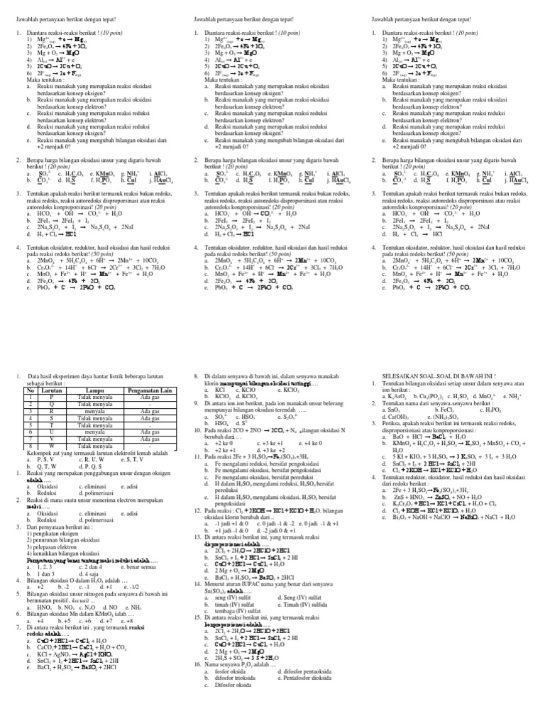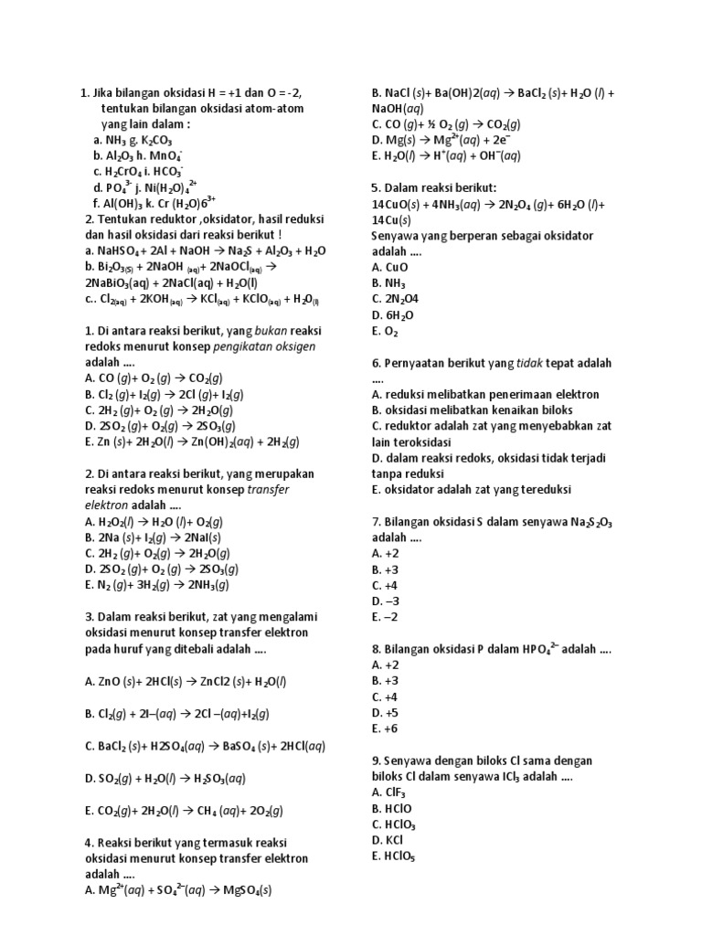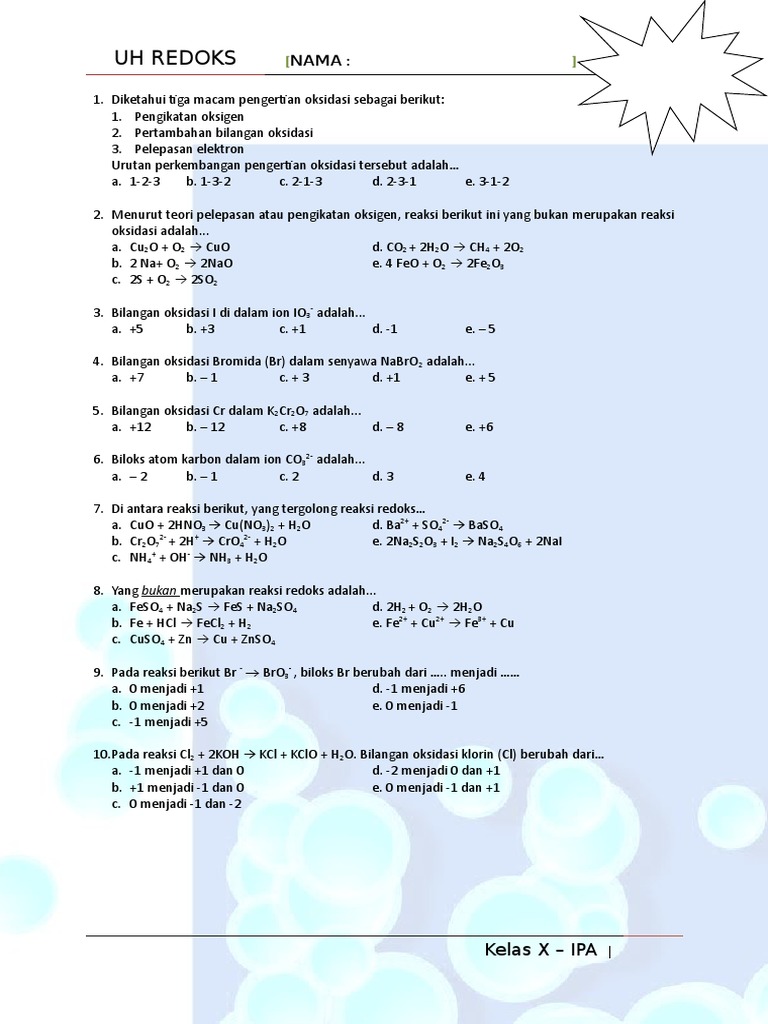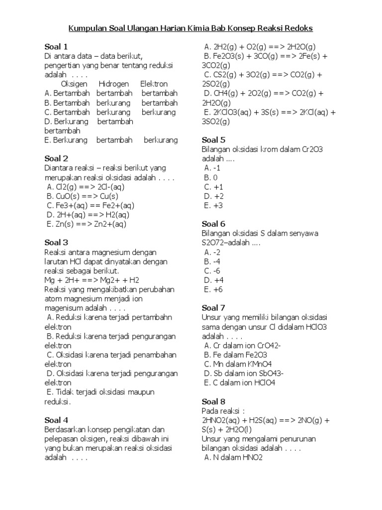 DOC) Soal Ulangan Redoks dan Tatanama kelas X.doc | Haris Yudiswara - Academia.edu