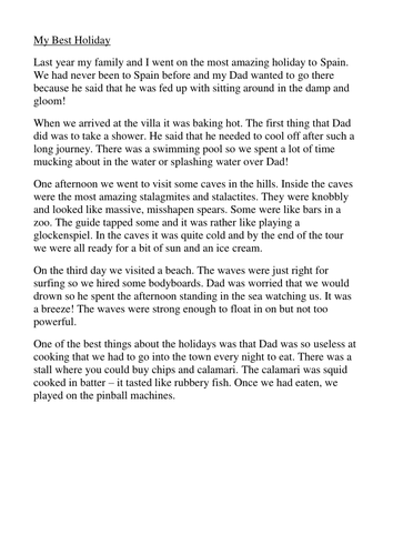 Holiday Recount Writing Example KS2 (teacher made)