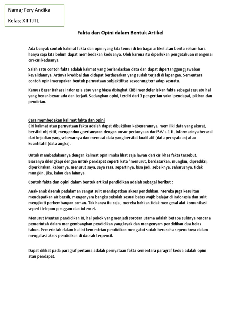 Fakta dan Opini dalam Bentuk Artikel.docx