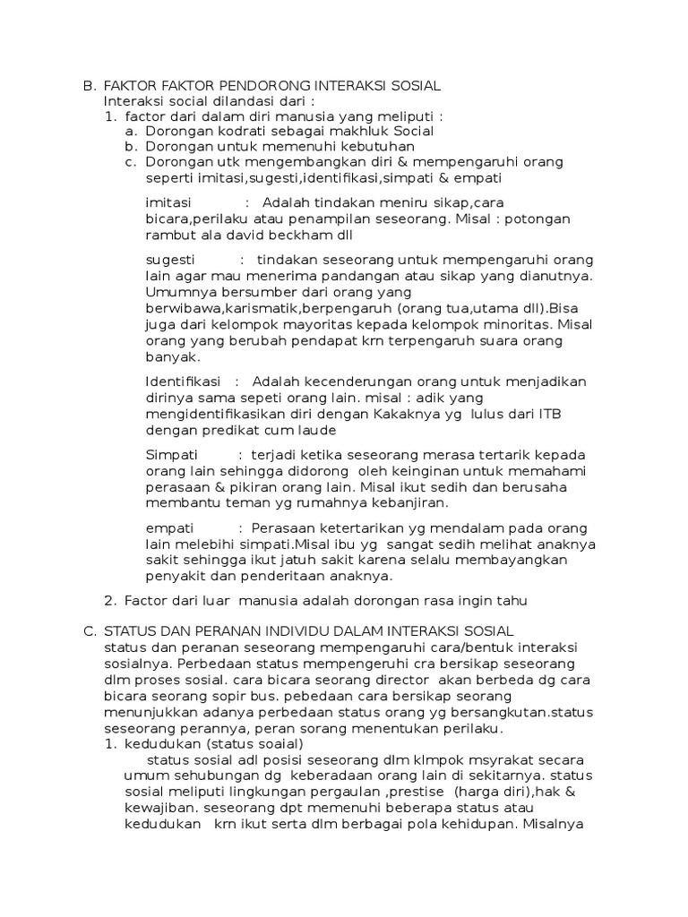 B). Faktor-Faktor Pendorong Interaksi Sosial